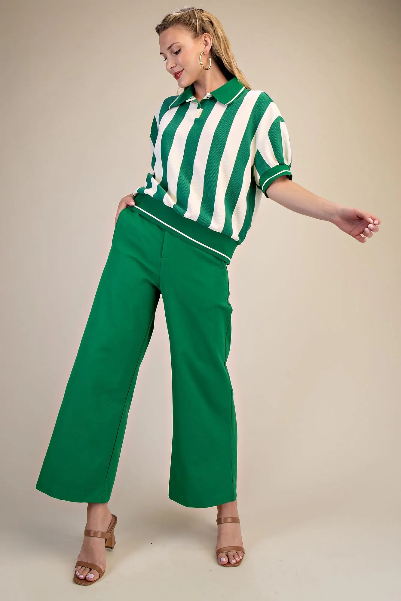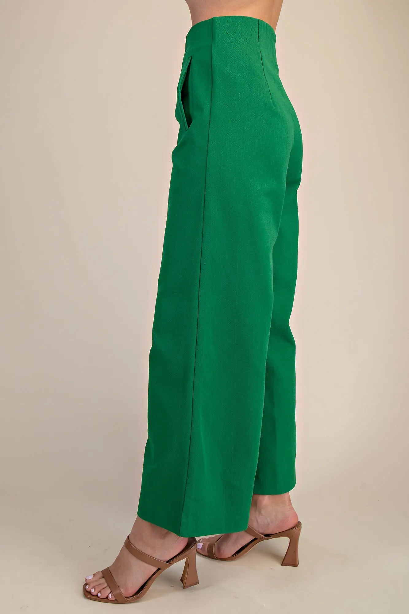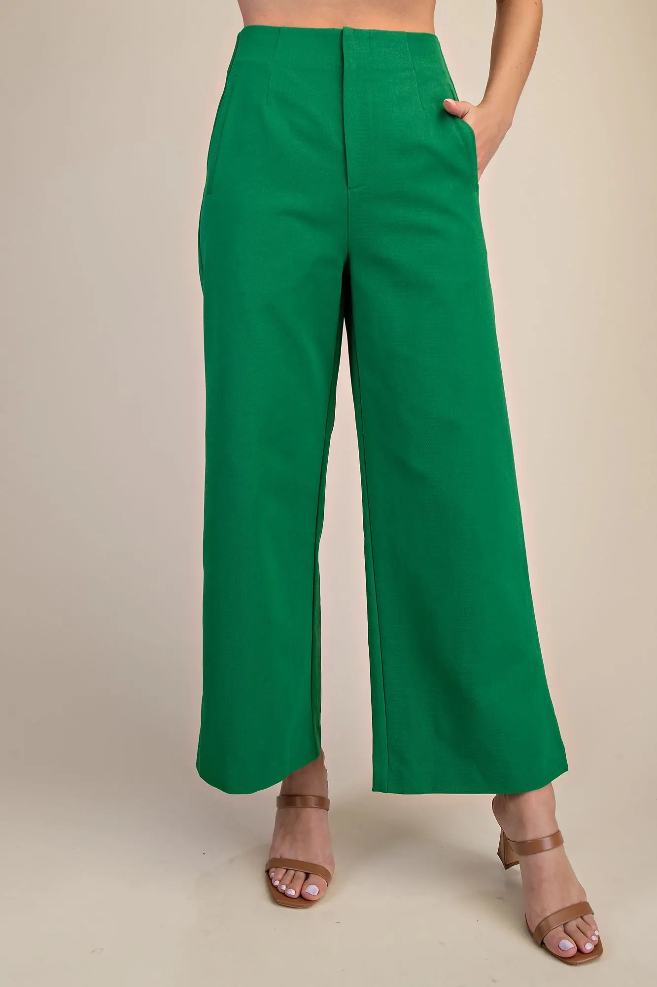 Elevate your everyday wardrobe with Fresh Focus Trousers, the perfect blend of style and practicality. Crafted from quality polyester, these green high-waist wide-leg pants offer a flattering silhouette that works for any occasion. The straight cut provides a timeless look, while functional side pockets keep your essentials within reach. Whether you're heading to the office or out for the weekend, these versatile trousers deliver comfort and sophistication that won't compromise on functionality.