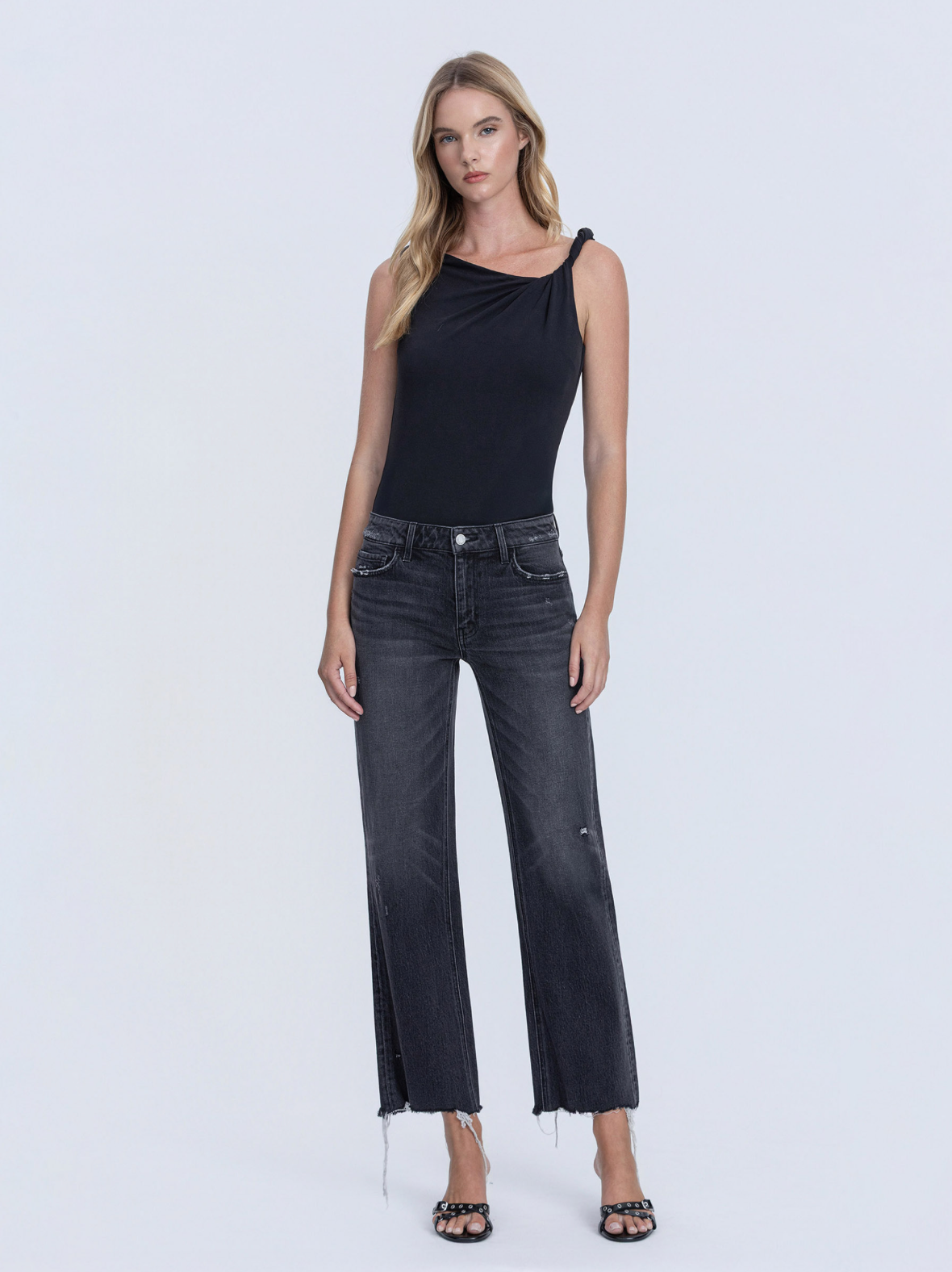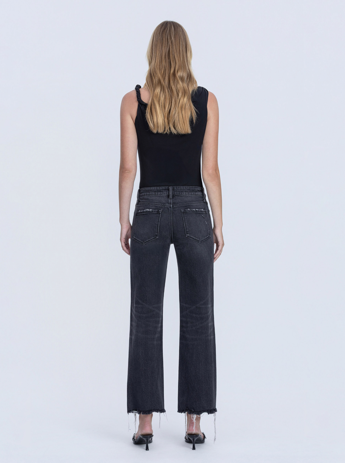 Elevate your everyday style with these Smoky Straight Jeans, featuring a flattering mid-rise cut that works for virtually any body type. The distressed hem adds an edgy, contemporary touch that keeps your look fresh and fashion-forward. Crafted in classic black denim, this versatile pair transitions seamlessly from casual weekends to dressed-up nights out. The slim-wide silhouette offers the perfect balance of comfort and definition, hugging where it matters while allowing room to move. Whether you're running errands or making a statement, these jeans deliver the effortless cool factor every wardrobe needs.