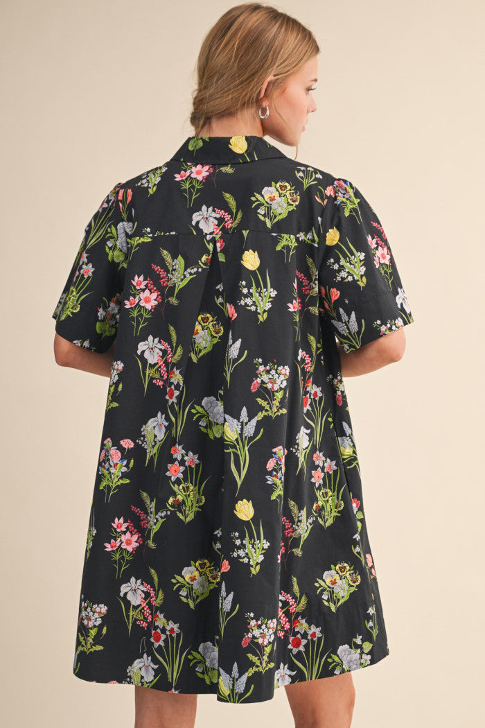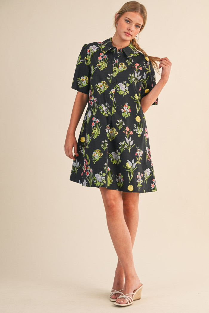 Effortlessly charming, this Garden Stroll Dress brings springtime flair to your everyday rotation. The vibrant floral print pairs beautifully with a classic button-down design, while a relaxed silhouette and practical side pockets keep you comfortable and stylish. Collared neckline and wide short sleeves offer a polished yet laid-back vibe that transitions seamlessly from casual outings to weekend adventures. Lined for added confidence, this mini dress works with sneakers, sandals, or boots—making it the versatile piece your wardrobe has been waiting for.