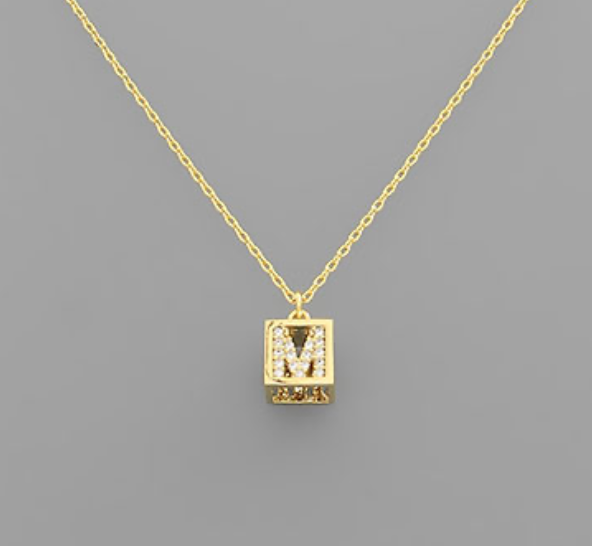 Initial Square Pendant Necklace