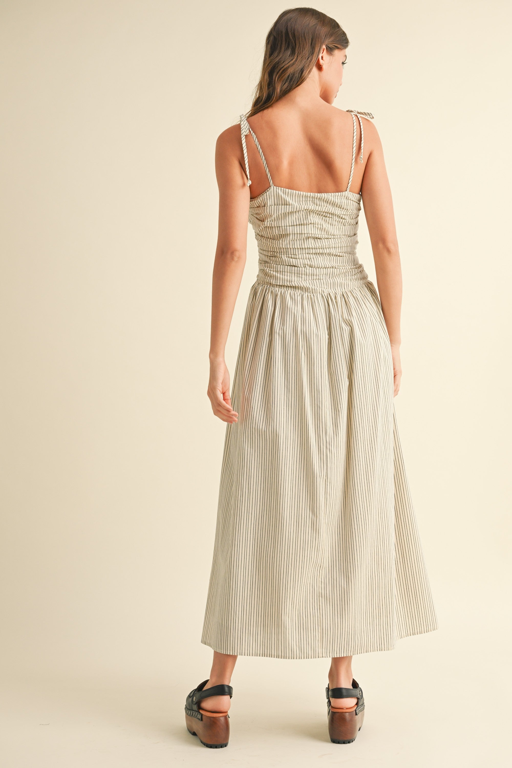 The Striped Serenity Dress blends effortless femininity with timeless style. Featuring delicate tie straps and a softly smocked bodice, it flatters your figure while providing all-day comfort. Its flowing midi skirt moves gracefully, complemented by subtle vertical stripes that elongate your silhouette. Ideal for sunny afternoons or weekend getaways, this dress offers relaxed sophistication perfect for any laid-back occasion.
